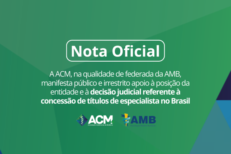 A Associação Catarinense de Medicina – ACM, na qualidade de federada da Associação Médica Brasileira – AMB, manifesta público e irrestrito apoio à posição institucional